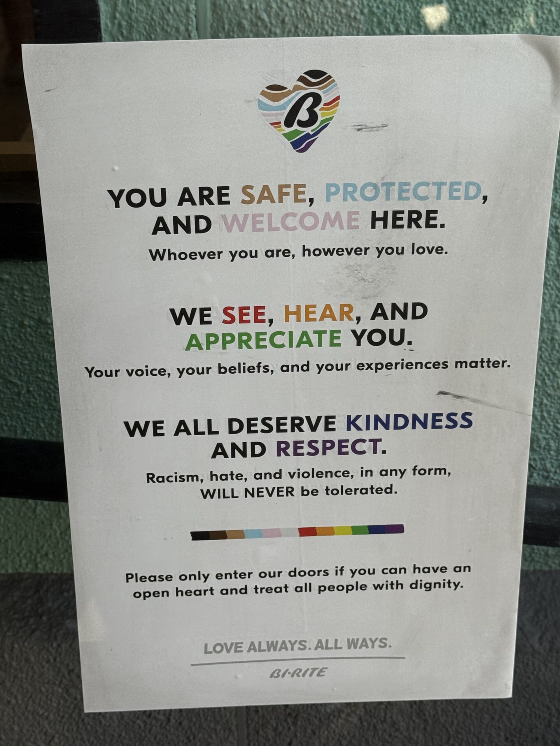 But one of Ben’s favorite parts was the sign at the Bi-Rite Creamery which served absolutely delicious ice cream to all people, who they love always, all ways!