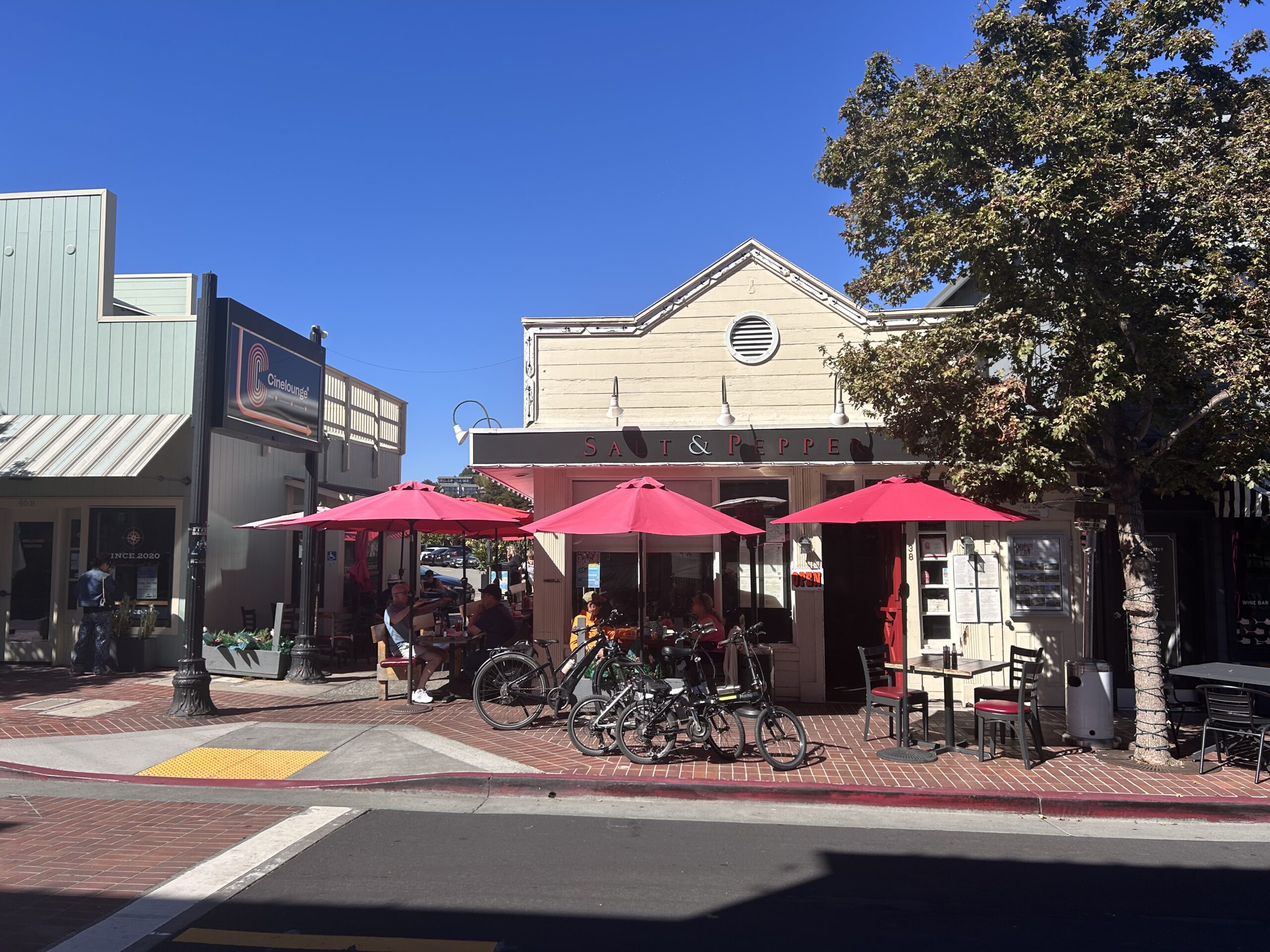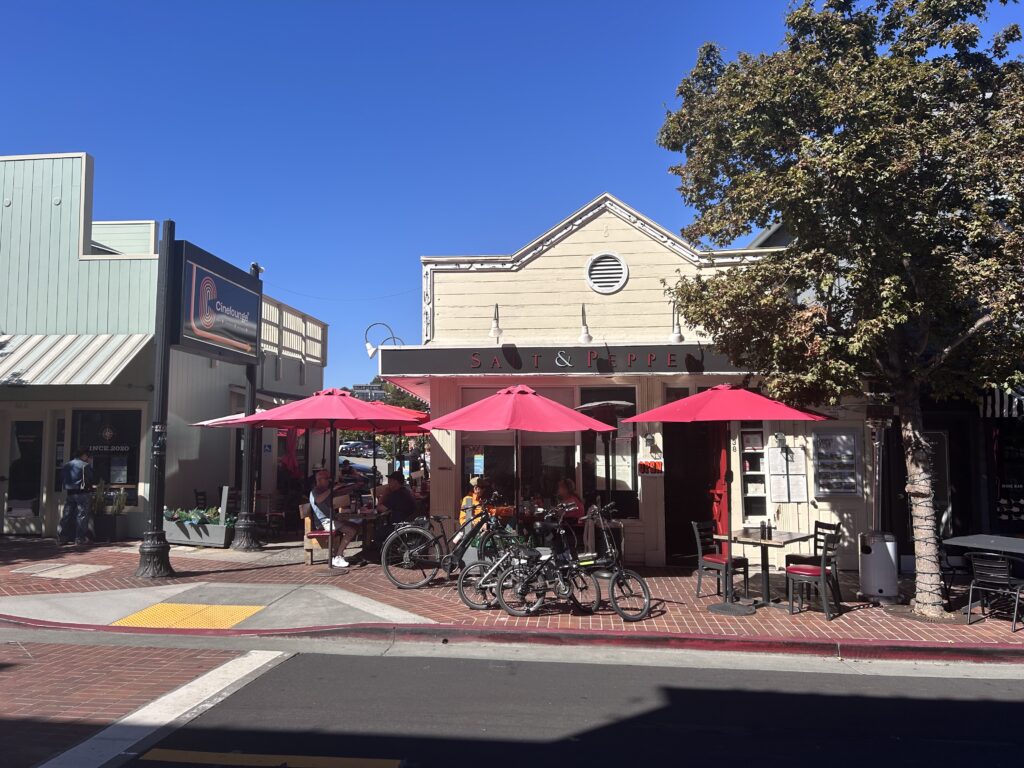 We walked through the super cute town of Tiburon, past all the 100+ year old boat houses that have been converted into shops, down to Sam’s for what we thought was going to be a peaceful, relaxing vista-filled lunch on the waterfront. But right as we ordered a drink and some lunch, a very loud large crane on the water blocking our view started spurting out diesel fumes.