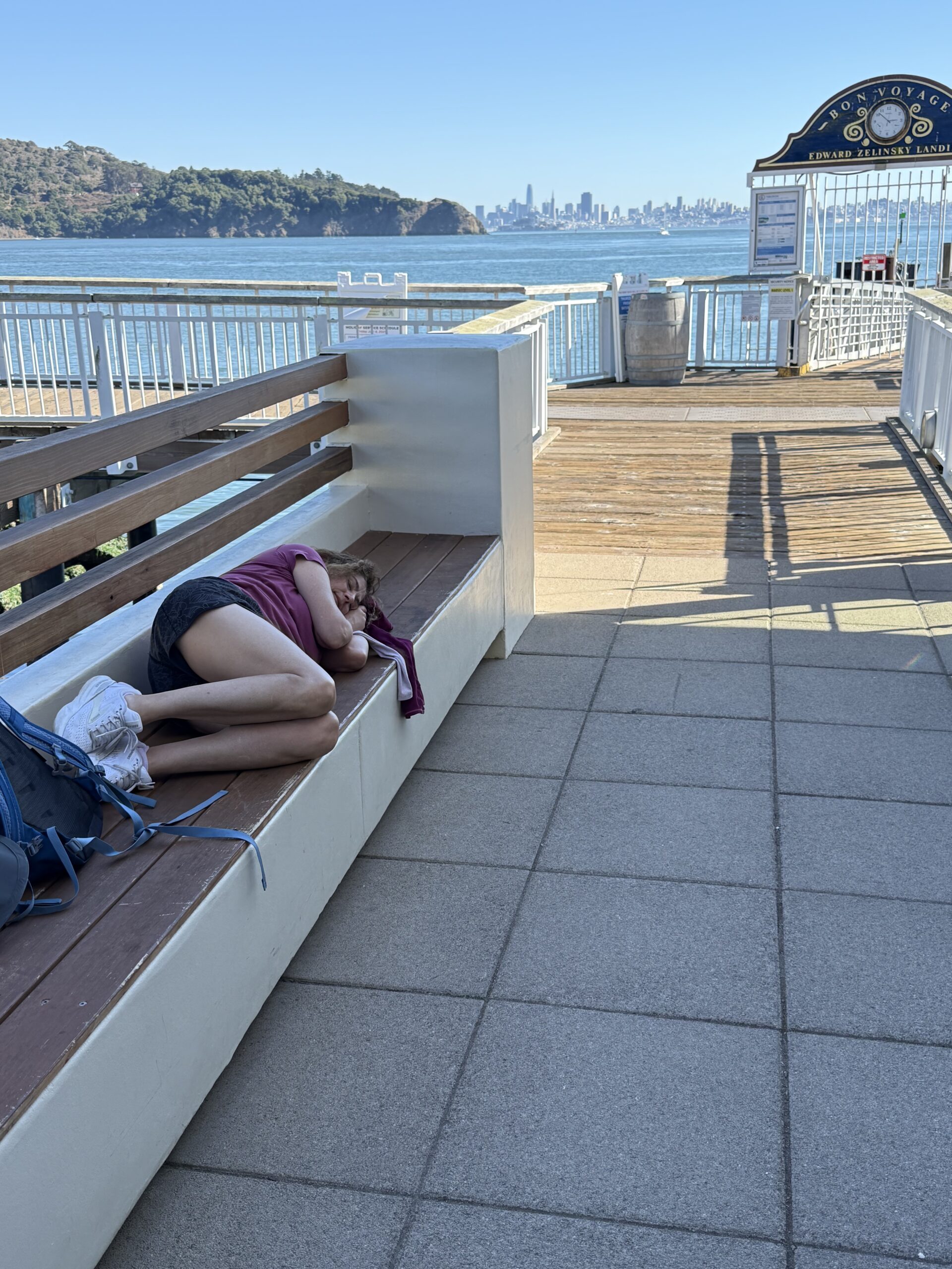 Funny true story: Ben’s university t-shirts help us meet all sorts of wonderful people – like Reed – who was in the same year as Ben from HBS who was heading to Tiburon on the same ferry to visit his folks!