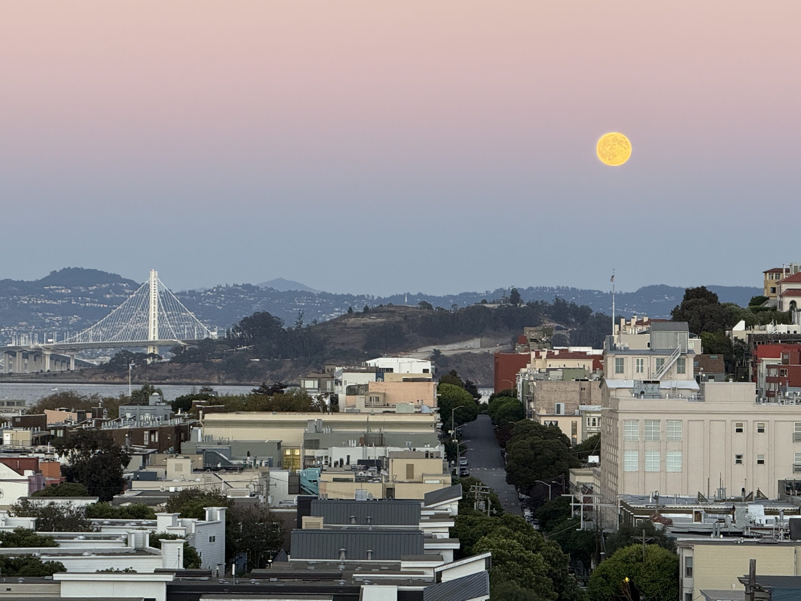 By the time we got back to our place, the sun was setting and we had a spectacular view of the full moon glowing in the evening San Francisco sky. What a gorgeous sight!