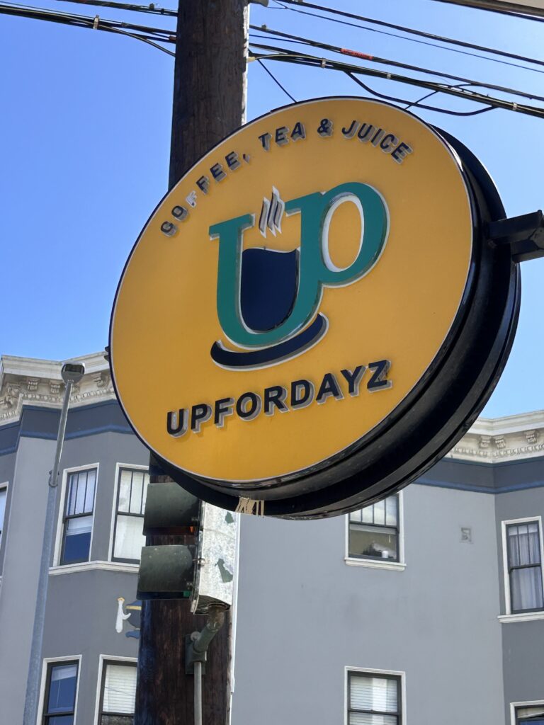 After the Castro festival, we walked through the Mission, past fun signs in the neighborhood, which Ben liked (can you imagine how it must feel to be up for days because of your morning brew?!):