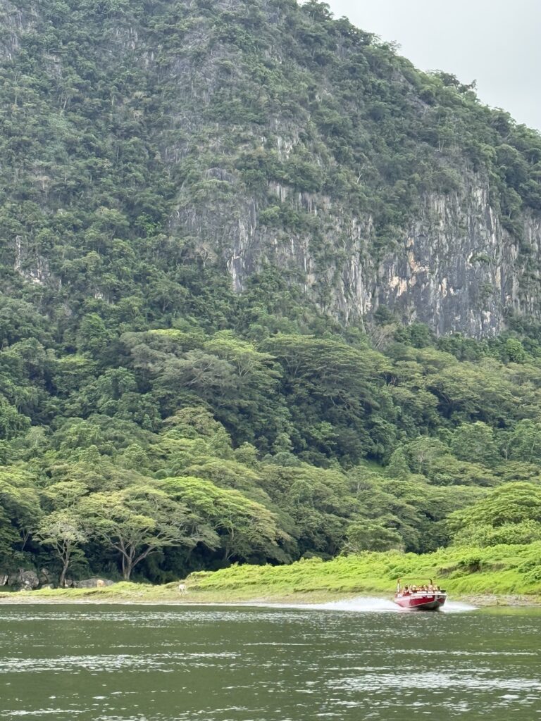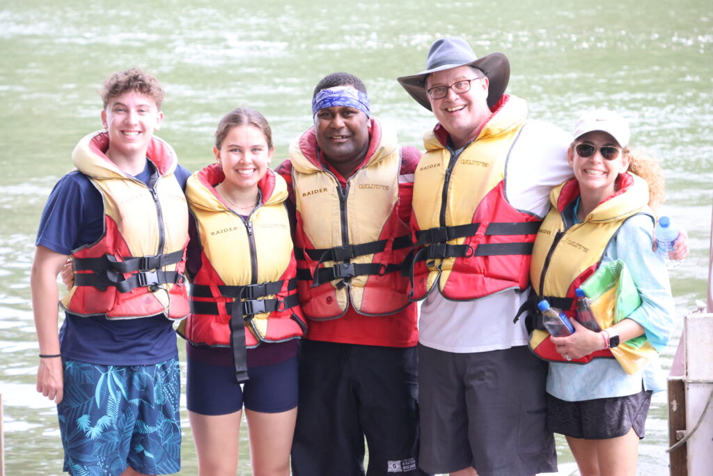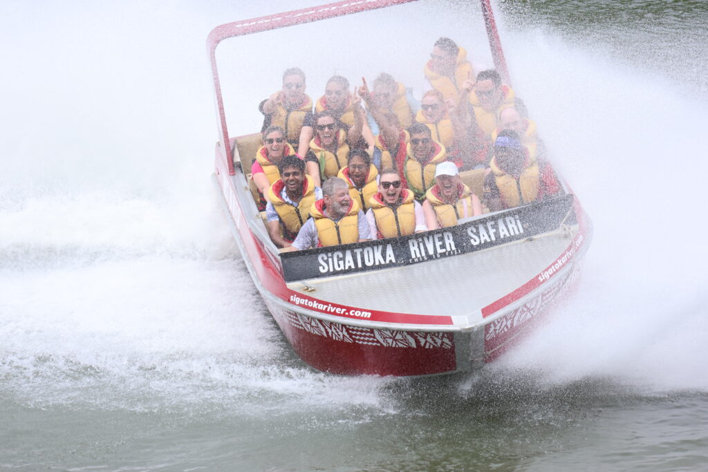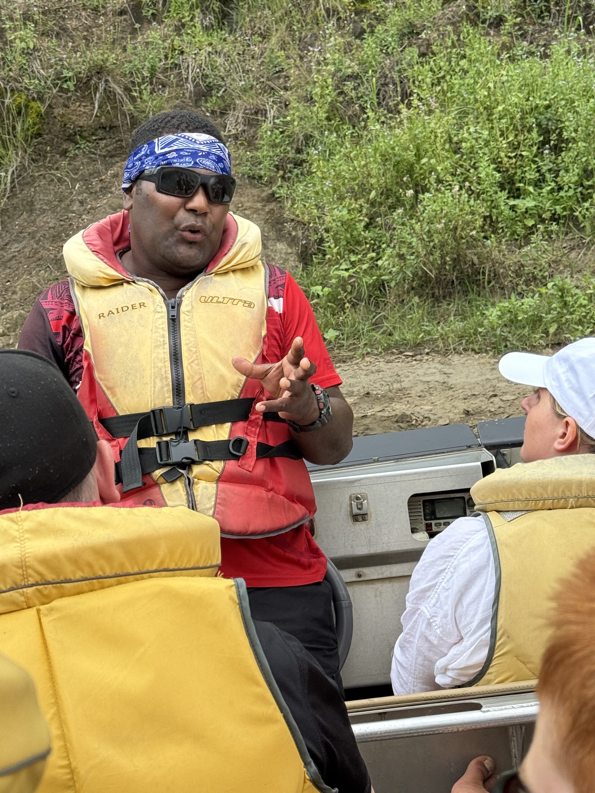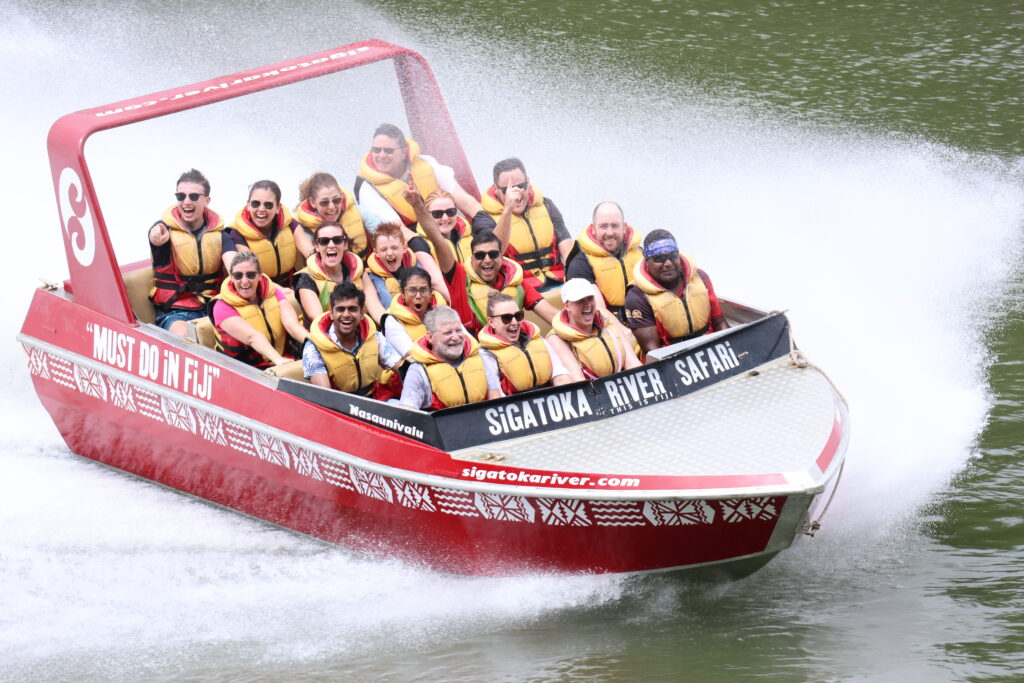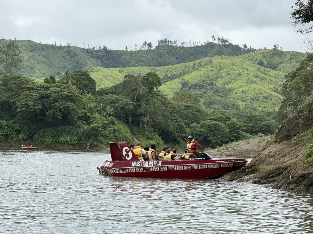 We kicked off January 2 with a Sigatoka River Safari Tour birthday celebration for Ben. At 7:45am we hopped on the bus, stopped off at the Shangri-la to pick up more people, and then drove about another 30 minutes past the “salad bowl” of Fiji (where they grow all the fruits and veggies) to the Sigatoka River.